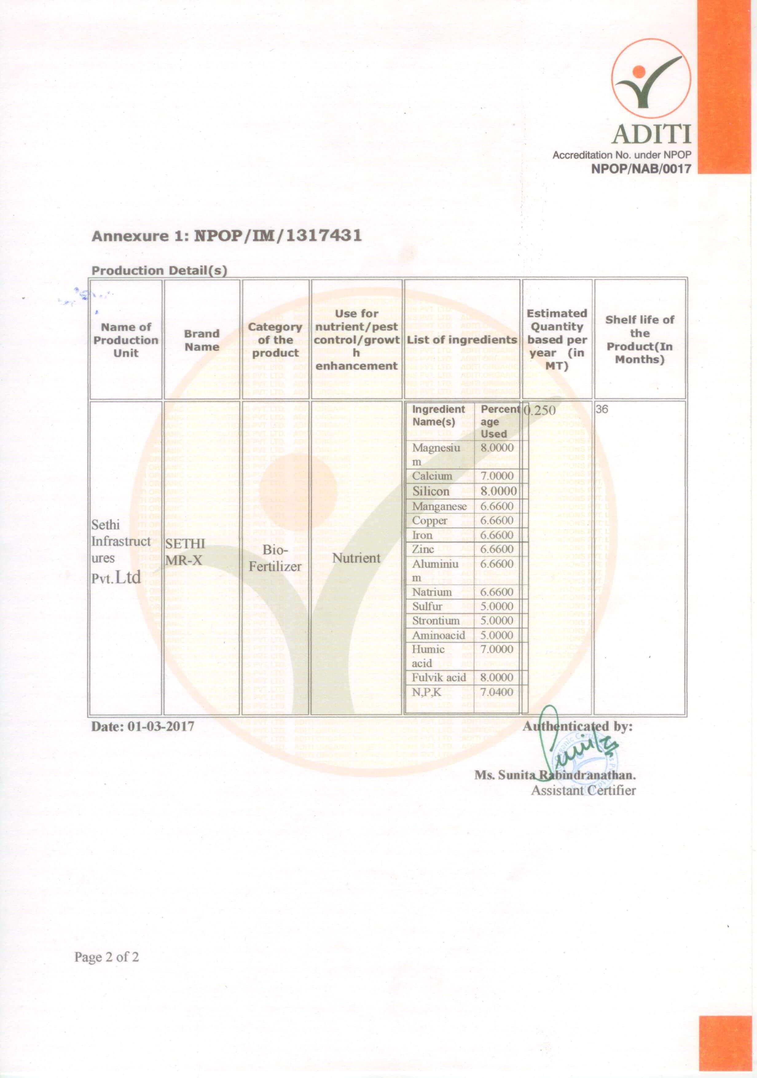 The company was established by Mr. Jagjeeth Singh Sethi on 25th June 2007 and has launched a Unique Agro Product ‘SETHI MR-X’ which is a class apart with attractive and distinctive features and synonymous in the market for excellent quality and ease of use in Agriculture, Horticulture, Floriculture, Aquaculture, Hydroponics, Plantation and Tissue Culture Sectors .